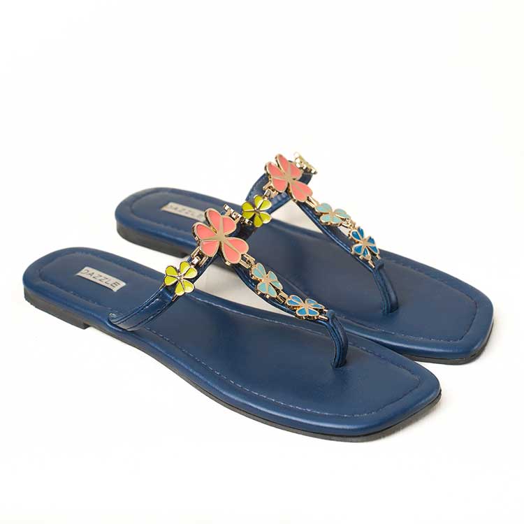 Our “Blue Fizz” slider is perfect for sophisticated closets since it is cool, soothing, and easily stylish. A modern touch is added by the silver-toned flowery metal element, which strikes a balance between calm and sleek design. Wear it with striking contrasts, whites, or neutrals.