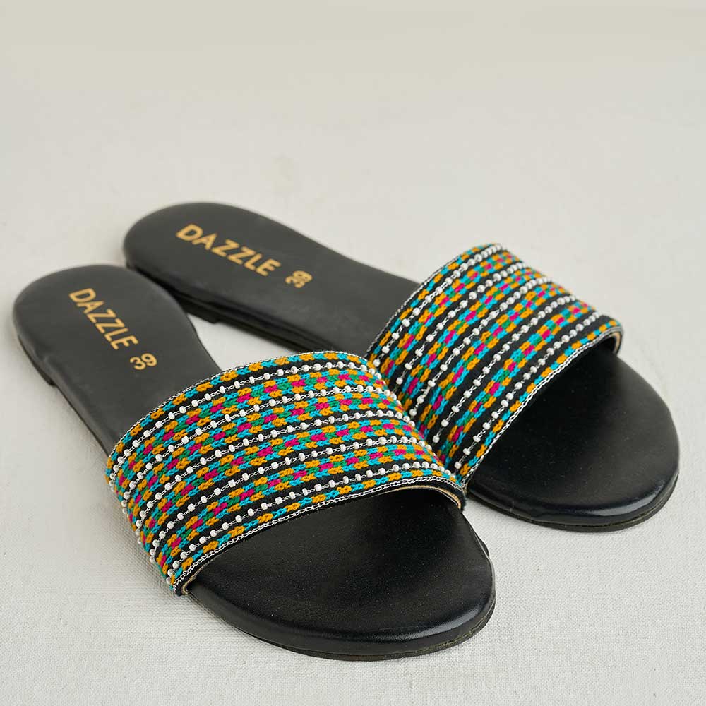 Add a playful twist to your look with “Claudia” a chic multi-colored slider crafted from suede velvet. Its beaded strap design brings effortless charm and comfort, perfect for casual days with a stylish edge.