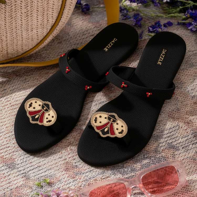 Cute meets cool in this black slip-on, accented with subtle red details and a playful charm for a fun twist with a hand embroidered ladybird on the thumb. Designed for easy comfort and everyday wear, it’s perfect for casual outings with a hint of personality. Effortless, quirky, and totally vibe-ready.