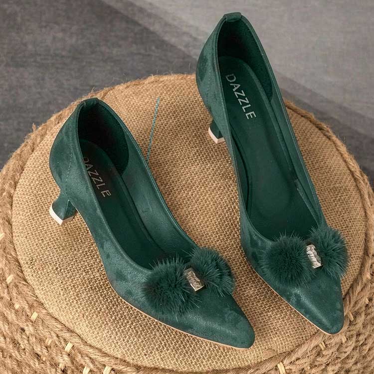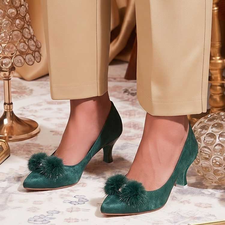 Chic and captivating, “Morphia” kitten heels feature a rich teal blue accented with a plush fur embellishment for a touch of luxe drama. Designed to blend comfort with statement style, they add effortless elegance to both casual and dressy looks. Bold, modern, and irresistibly stylish.